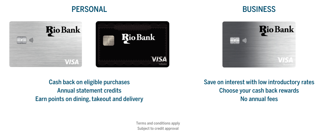 Rio Bank has partnered with Elan Financial Services to offer personal and business credit cards to our customers.